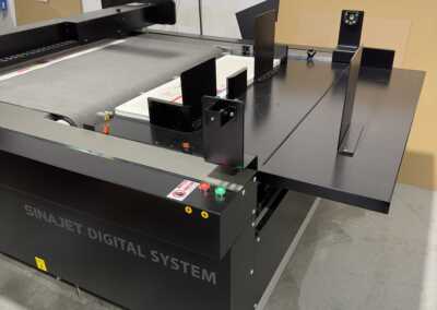 Zainstalowany ploter zastąpił w drukarni urządzenie poprzedniej generacji z 2021 roku (wersję  Sinajet 0906MT). Jest to urządzenie o dwukrotnie większym polu pracy (poprzednia maszyna była w formacie 60x90cm, nowa ma format 120x90cm) umożliwiające jednocześnie cięcie dwukrotnie grubszych materiałów (narzędzie oscylacyjne o zwiększonej mocy pozwala na cięcie w materiale o grubości nawet do 2 cm). Zmiana ta podyktowana była rosnącą ilością zleceń,  szczególnie w zakresie wycinania opakowań i konstrukcji z tektury litej oraz falistej, wybiegających poza typowe formaty i wymagające zastosowania grubszych materiałów.