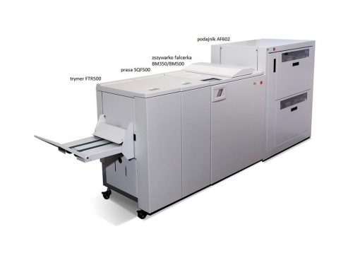 System może być wyposażony ponadto w prasę grzbietu SQF500 oraz obcinarkę czołową FTR500.(wyposażenie obligatoryjne dla wersji BM500) Prasa umiejscowiona jest za zszywarką w celu sprasowania grubszych broszur i zwiększenia precyzji cięcia frontu broszury. Trymer FTR500 umożliwia wykonanie wielokrotnych cięć w jednym przebiegu.