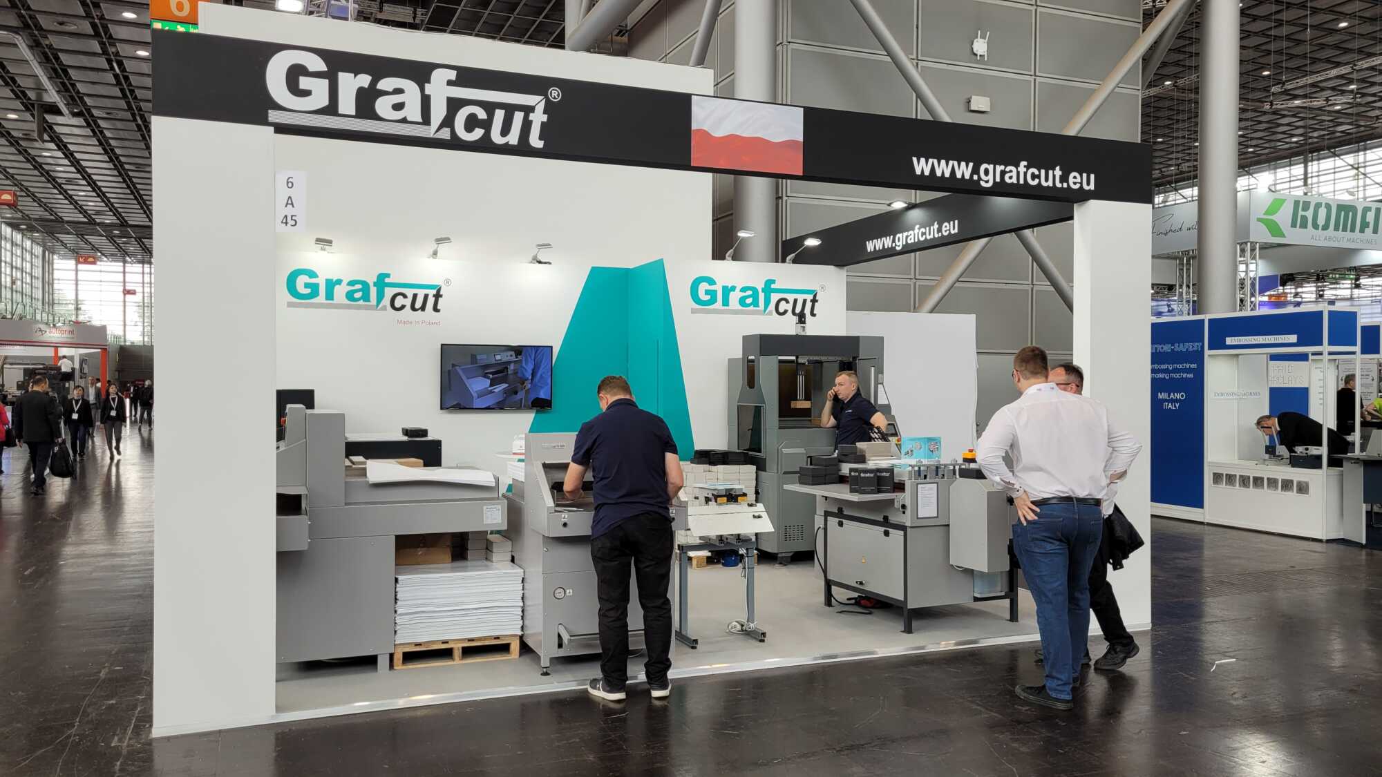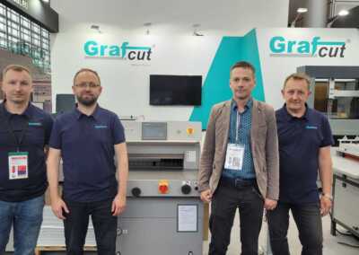 W dniach 27 maja- 7 czerwca br. braliśmy udział w targach drupa 2024. Po ośmiu latach przerwy nasza firma, znana za granicą pod marka Grafcut, ponownie została wystawcą tych największych na świecie targów branży poligraficznej. Na stoisku prezentowaliśmy trzy produkowane w Opatowie krajarki do papieru G52H, G73H i G80H. Wszystkie miały w pełni hydrauliczny napęd i sterowanie PLC. Nowością była zaprezentowana po raz pierwszy krajarka w szerokości 80cm, która dostępna będzie w naszej ofercie wkrótce.