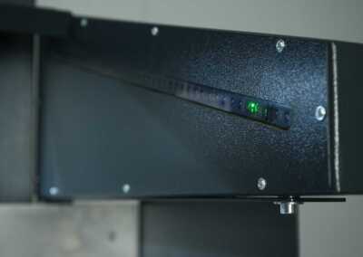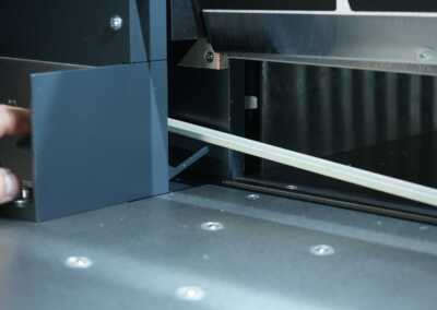 • elektromechaniczna belka dosuwu napędzana serwomotorem z szybkim przejazdem 160 mm/s z dwustopniową prędkością najazdu o dokładności 0,1 mm