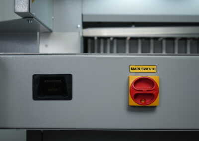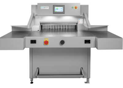 “Najmocniejsza na rynku elektro-mechaniczna krajarka do papieru o szerokości cięcia 73cm. Idealne rozwiązanie do cięcia arkuszy w formacie B2 i mniejszym, a także docinania arkuszy kupowanych w większych formatach (nawet z formatu B1) pod formaty cyfrowe. Sprawdzona konstrukcja na bazie wieloletnich doświadczeń łącząca solidność i możliwie niewielkie gabaryty. Nowoczesny i intuicyjny dotykowy programator, wysokie bezpieczeństwo pracy dzięki zastosowanym zabezpieczeniom. Krajarkę można zainstalować również przez wąskie drzwi oraz w pomieszczeniach z utrudnionym dostępem.”
