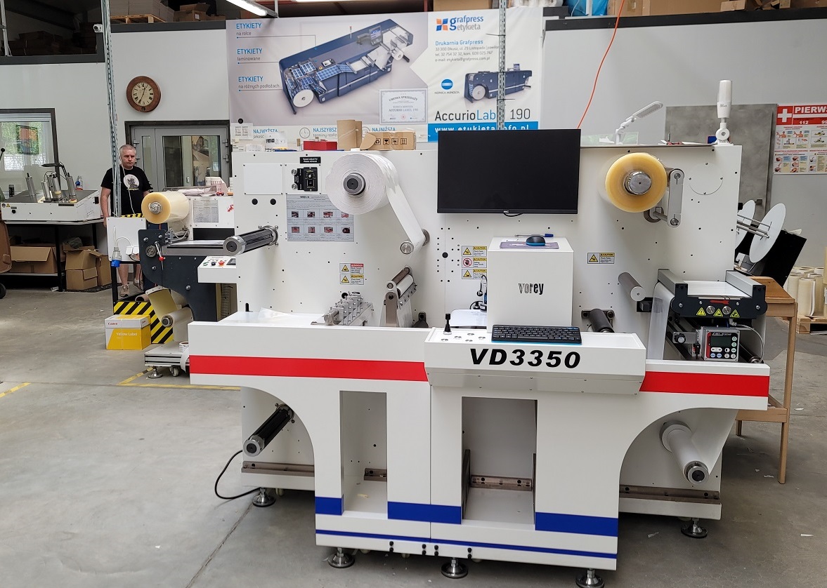 GRAFMASZ wdrożył w lipcu br. kolejne urządzenie do wykańczania etykiet- VD3350. Instalacja miała miejsce w drukarni GRAFPRESS w Olkuszu w województwie małopolskim, która zakupiła już 3 ploter tego typu. Drukarnia funkcjonuje na rynku od wielu lat, posiada własny bardzo dobrze wyposażony park maszynowy, w skład którego wchodzą m.in. maszyny drukujące cyfrowo, laminatory, krajarki, linia do broszur. W ostatnich latach GRAFPRESS mocno stawia na produkcję etykiet czego początkiem był zakup cyfrowej maszyny drukującej. Grafmasz wdrożył uprzednio w roku 2020 oraz 2021 dwa plotery VD320III, które szybko okazały się być niewystarczające dla rosnących zleceń drukarni.